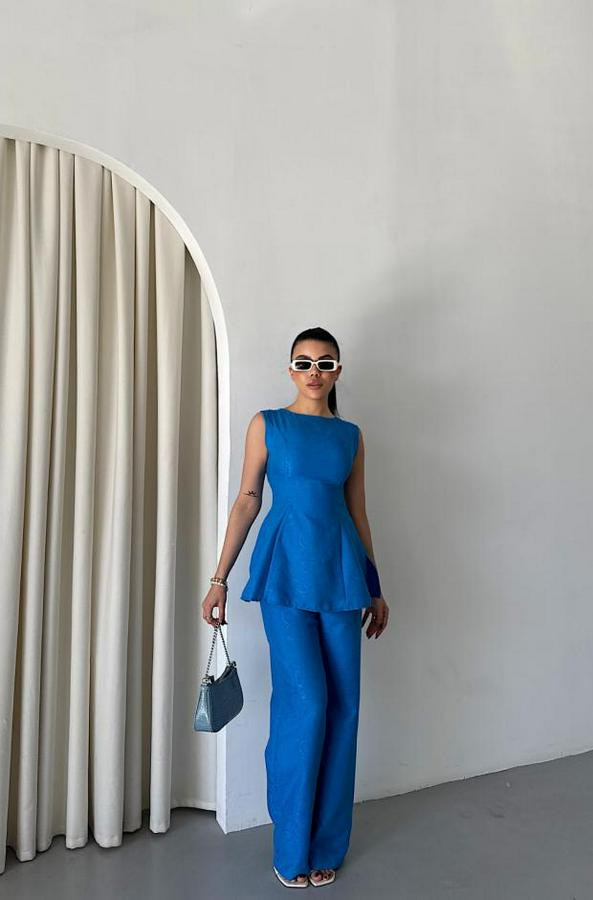 AnasayfaTüm ÜrünlerAlt GiyimPantolonJakar Keten Kolsuz Bluz-Pantolon Tk
