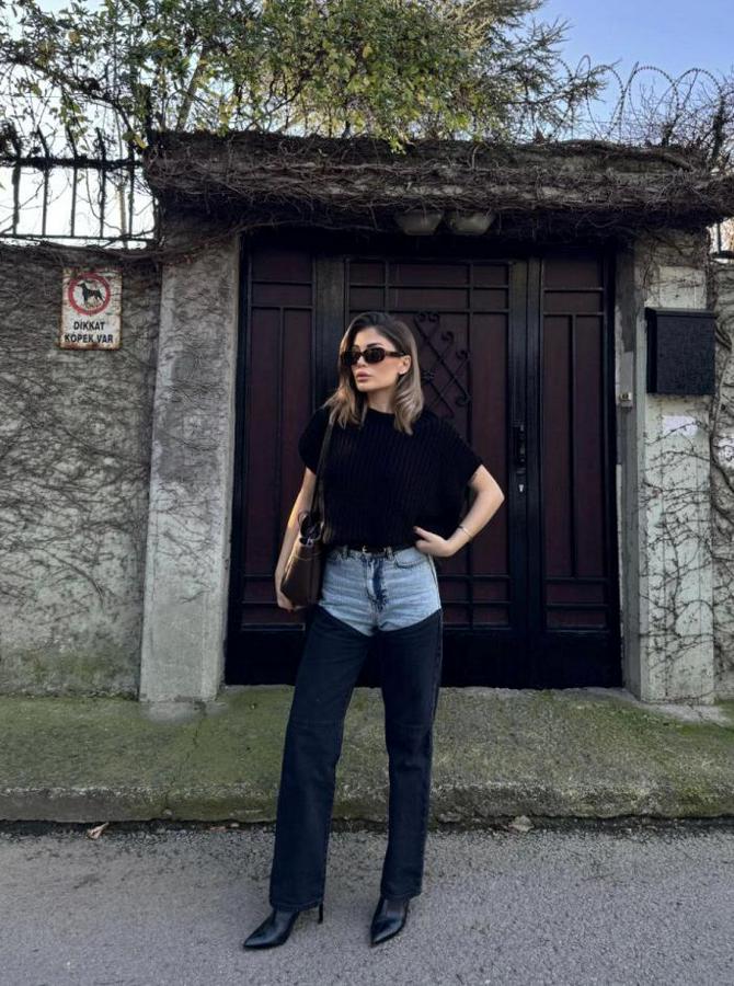 AnasayfaTüm ÜrünlerAlt GiyimPantolonJeans Kot Parçalı Palazzo Pantolon