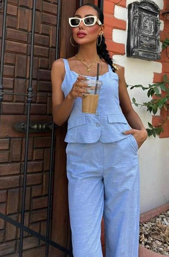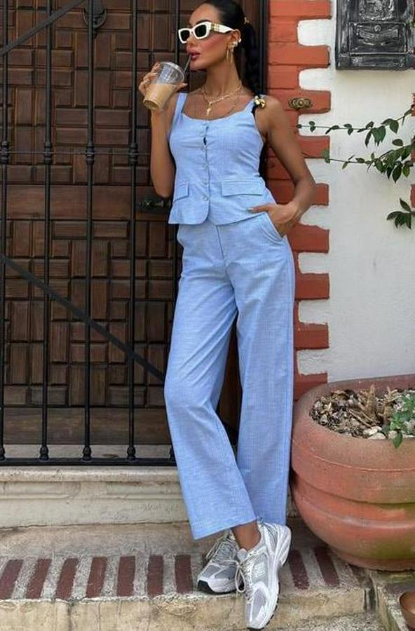 Kalın Askılı Bluz Pantolon Keten Takım 10187