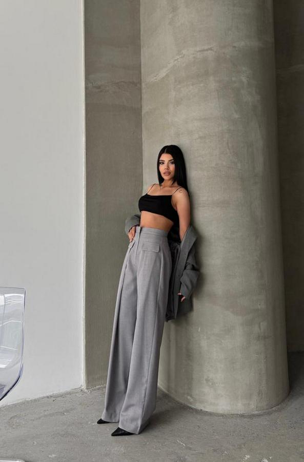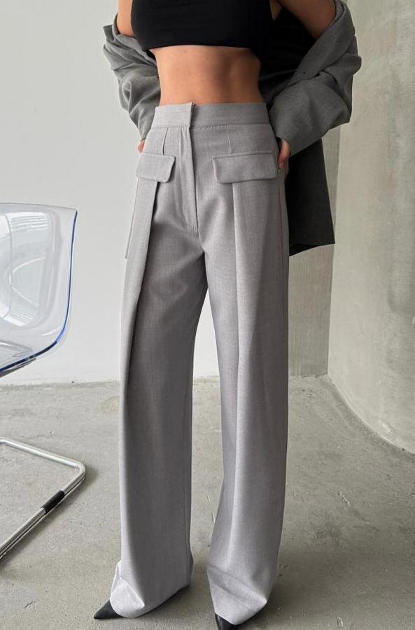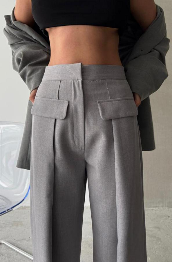 KAPALI GENİŞ PİLE CEP KAPAK DETAYLI PANTOLON - Gri