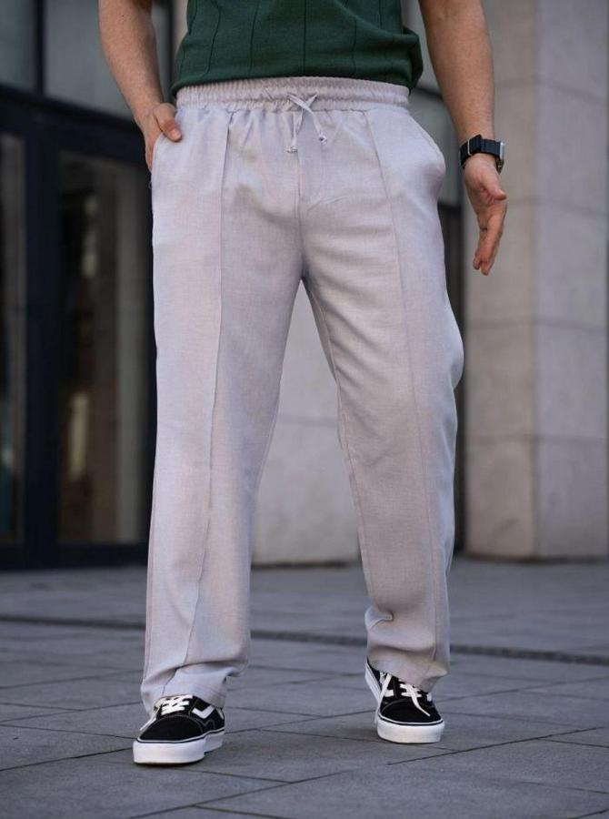 Erkek Keten Cepli Çıma Dikişli Jogger Buggy Pantalon Rahat Kalıp - Gri
