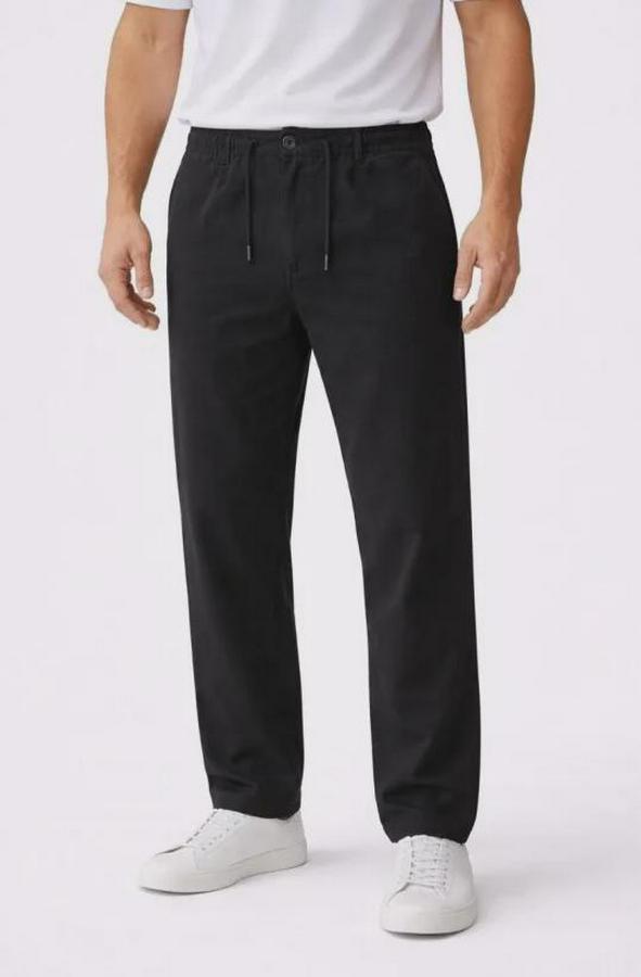 Erkek Keten Cepli Pantolon Lastikli Bel Bağcıklı Önden Fermuarlı - Siyah