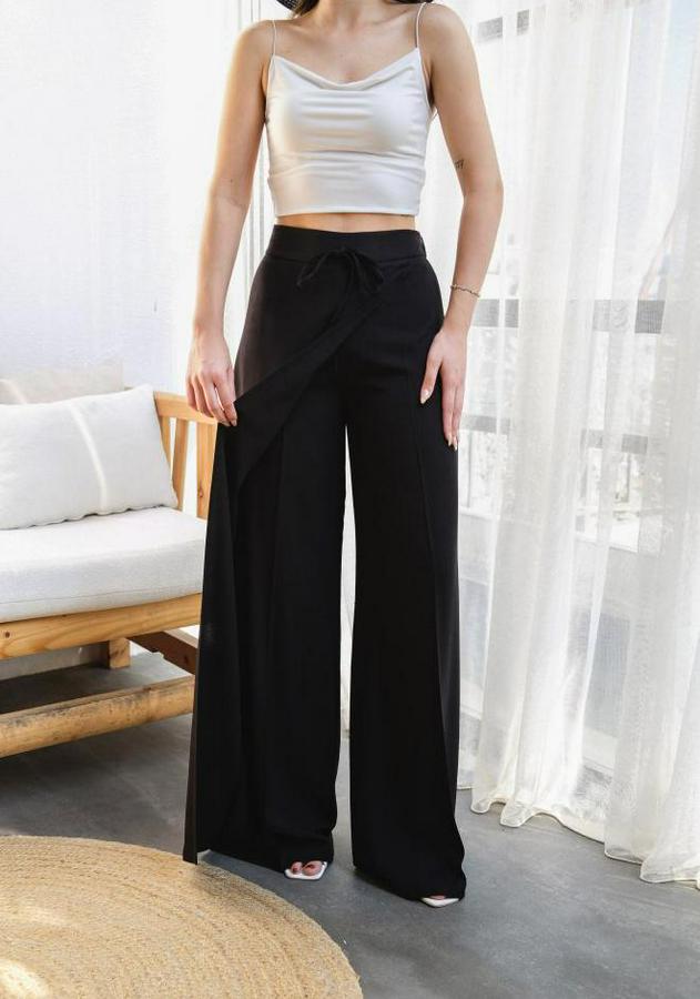 Keten Önü Çapraz Parçali Lasti̇kli̇ Ve Bağcikli Geni̇ş Paça Pantolon