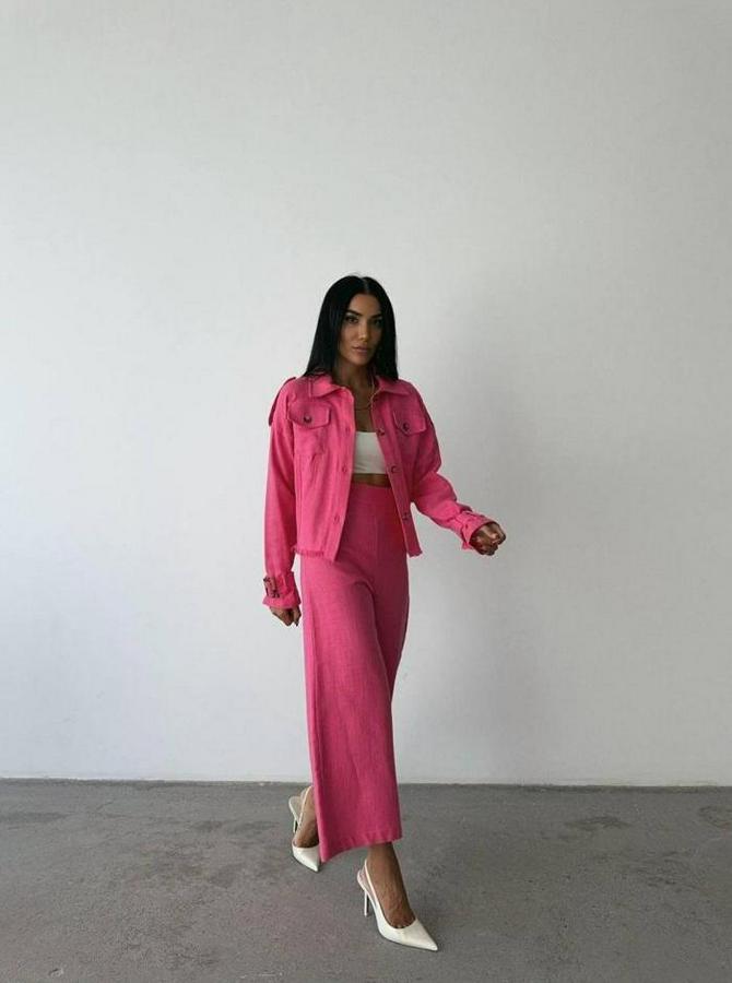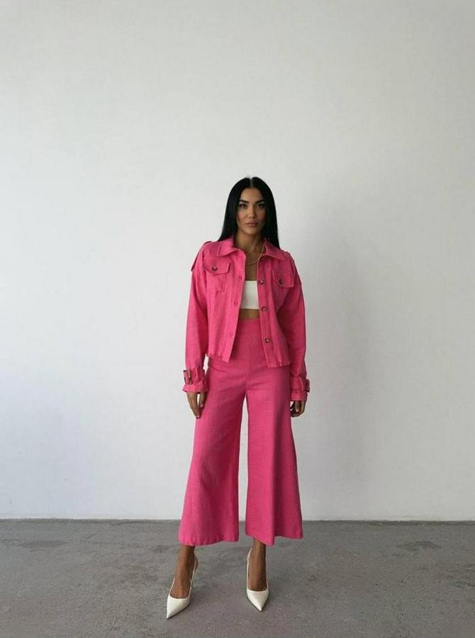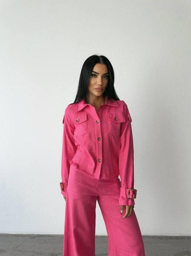 KETEN PÜSKÜL DETAYLI GÖMLEK-PANTOLON TAKIM - Fuşya