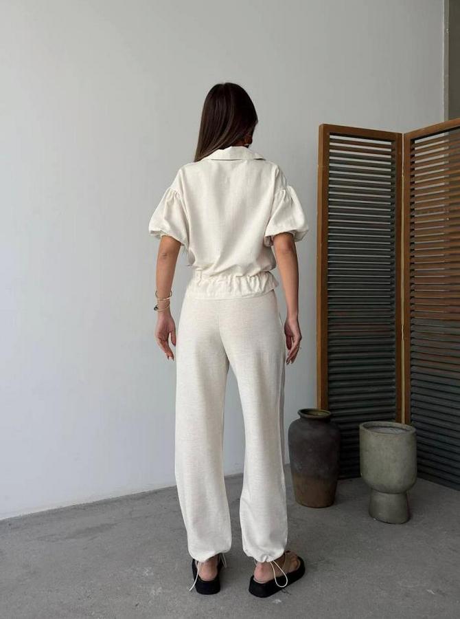 AnasayfaTüm ÜrünlerAlt GiyimPantolonKeten Tam Fermuarlı Kısa Kollu Gömlek Pantolon Ikili Takım