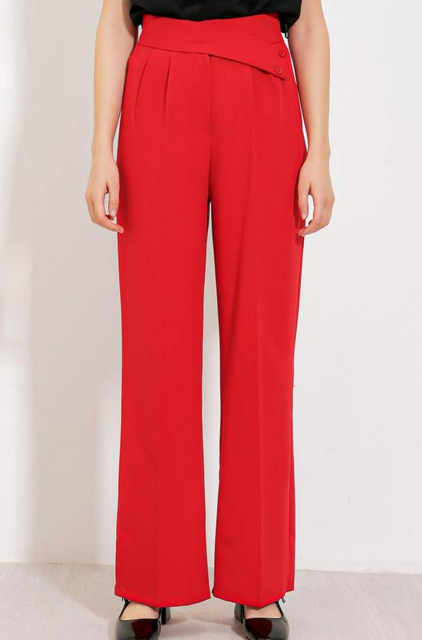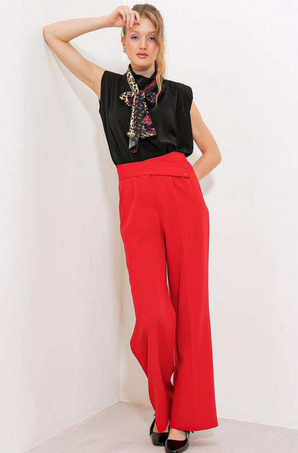 AnasayfaTüm ÜrünlerAlt GiyimPantolonKırmızı Yüksek Bel Palazzo Pantolon 6646