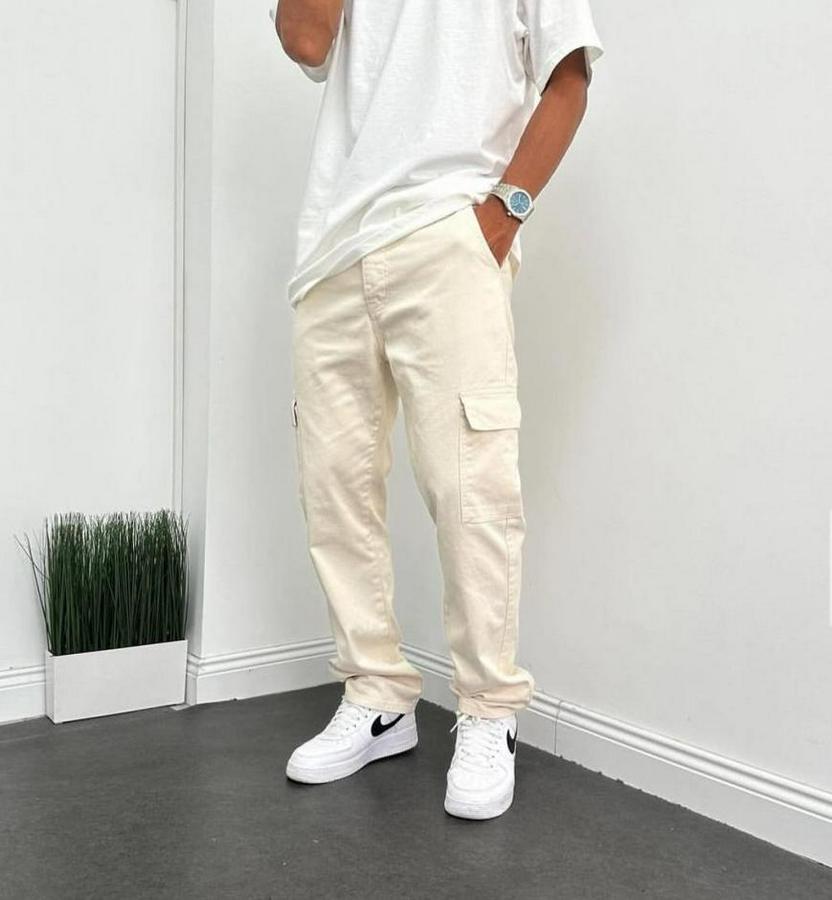 Erkek Krem Kargo Baggy Pantolon