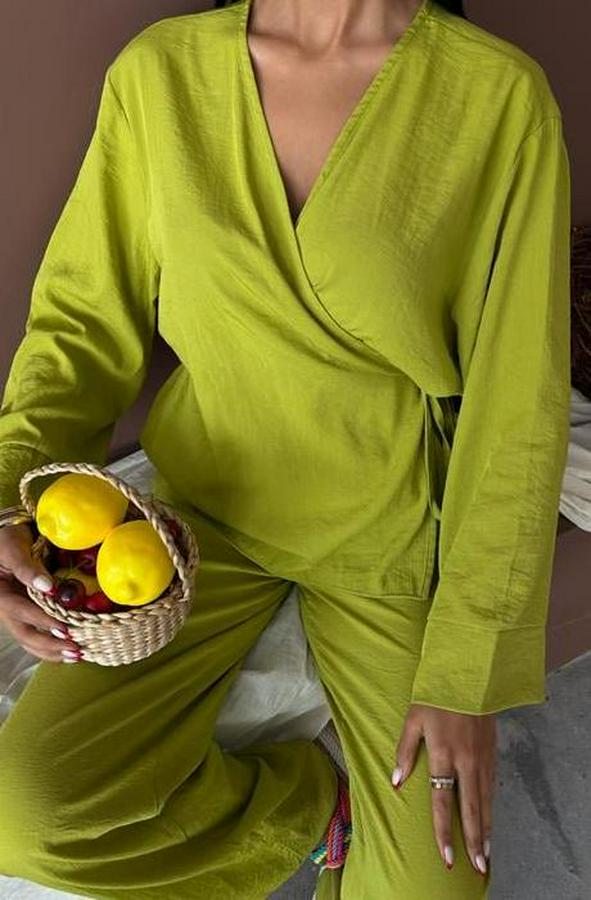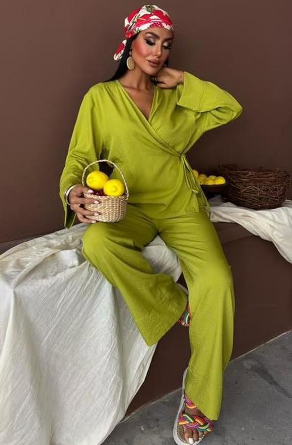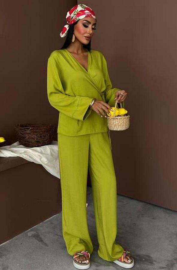 Kruvaze Model Klasik Pantolonlu Çupra Keten Takım 10191