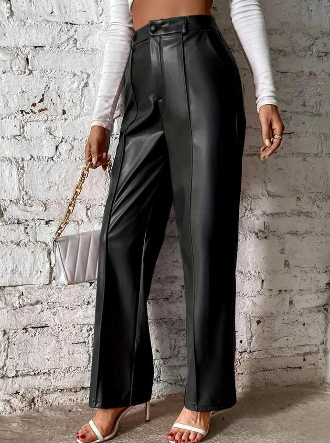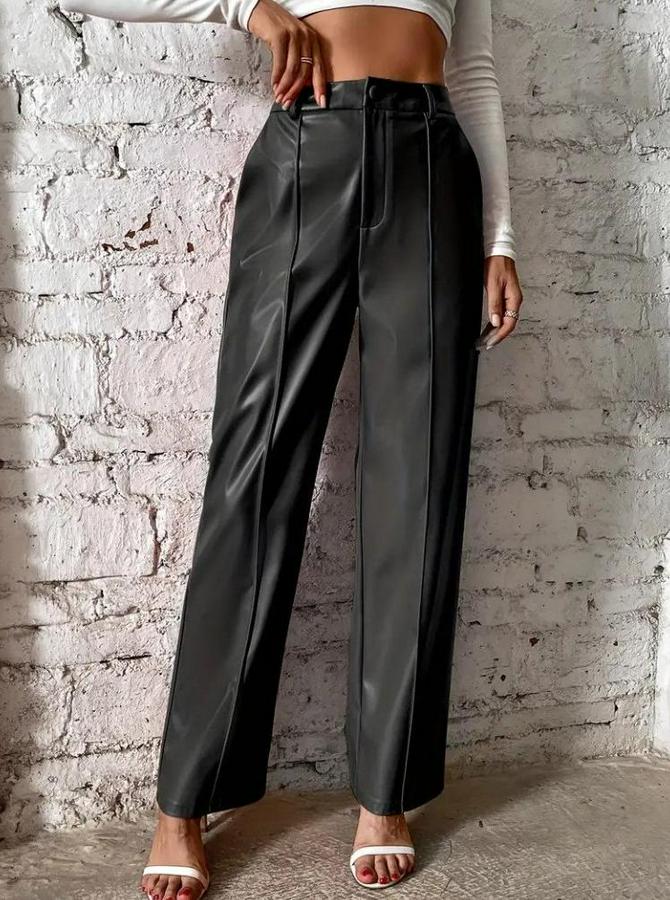 Kadın önden Fermuarlı Cepli Geniş Kesim Lame Deri Pantolon