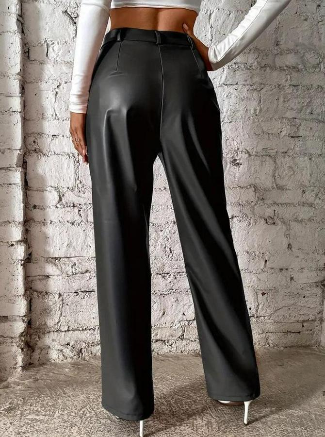 Önden Fermuarlı Cepli Geniş Kesim Lame Deri Pantolon