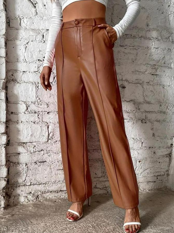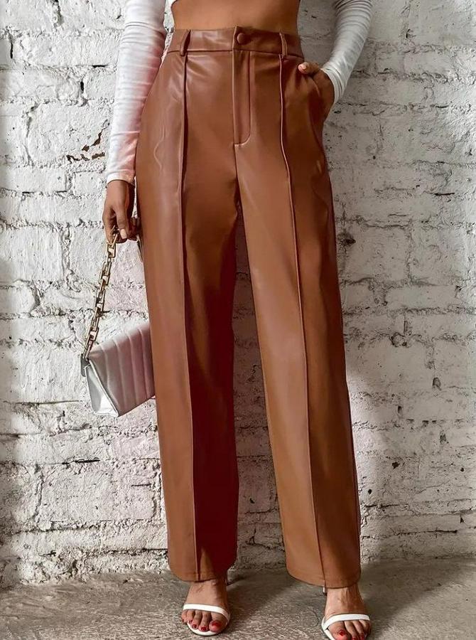 Kadın önden Fermuarlı Cepli Geniş Kesim Lame Deri Pantolon