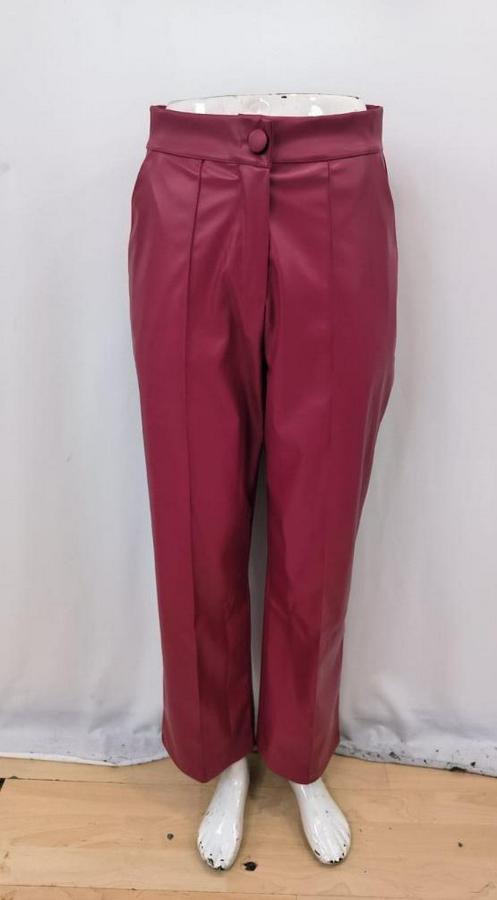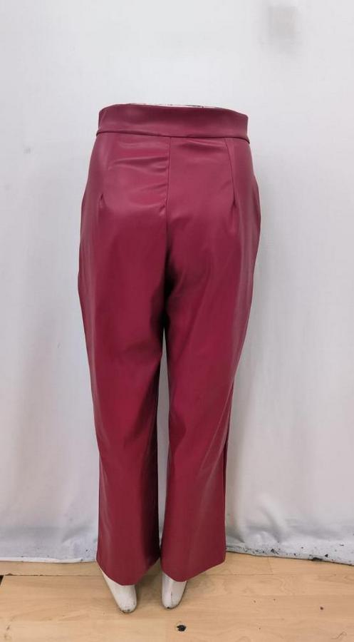 Kadın önden Fermuarlı Cepli Geniş Kesim Lame Deri Pantolon