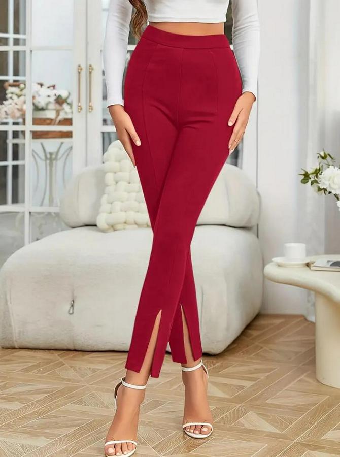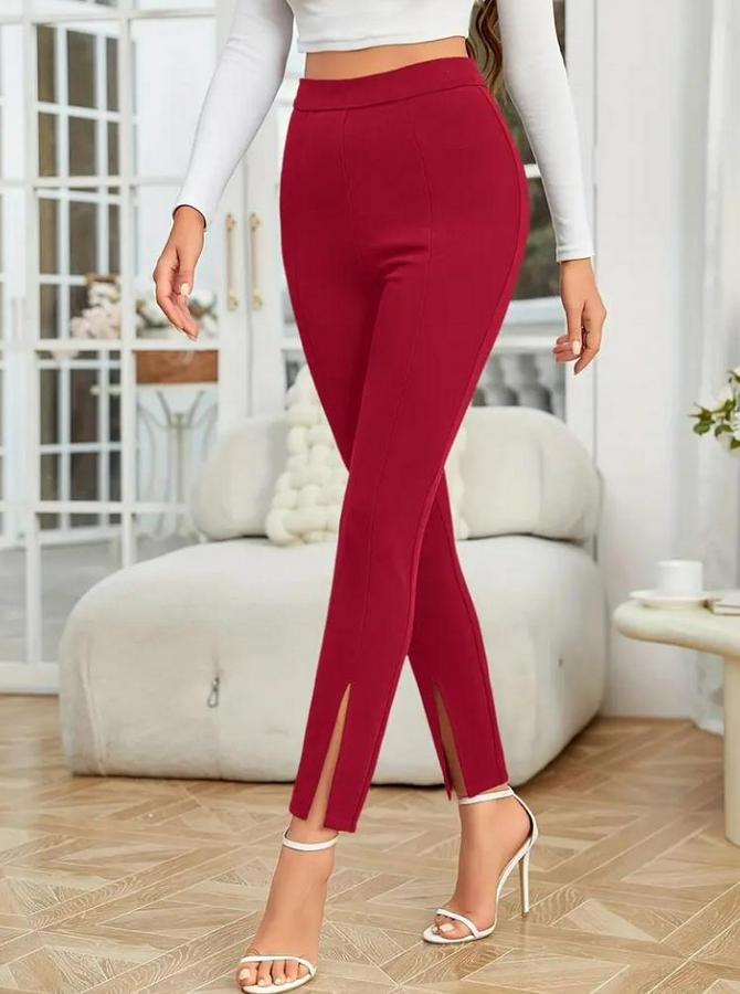 Kadın önden Yırtmaçlı Yüksek Bel Ithal Krep Pantolon