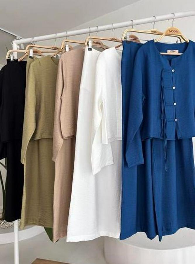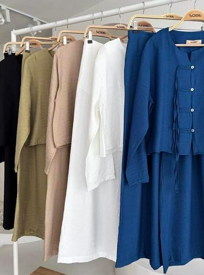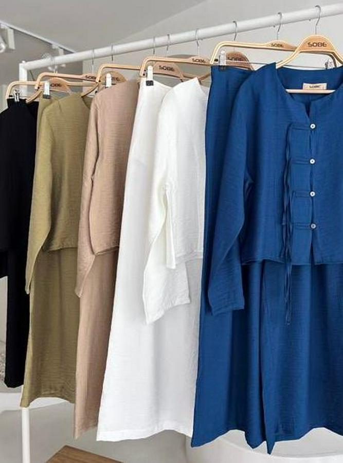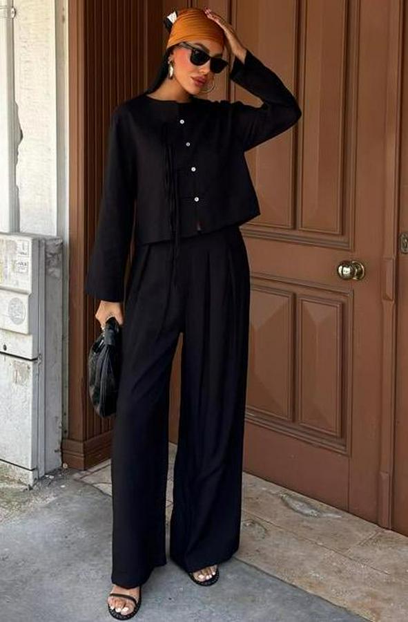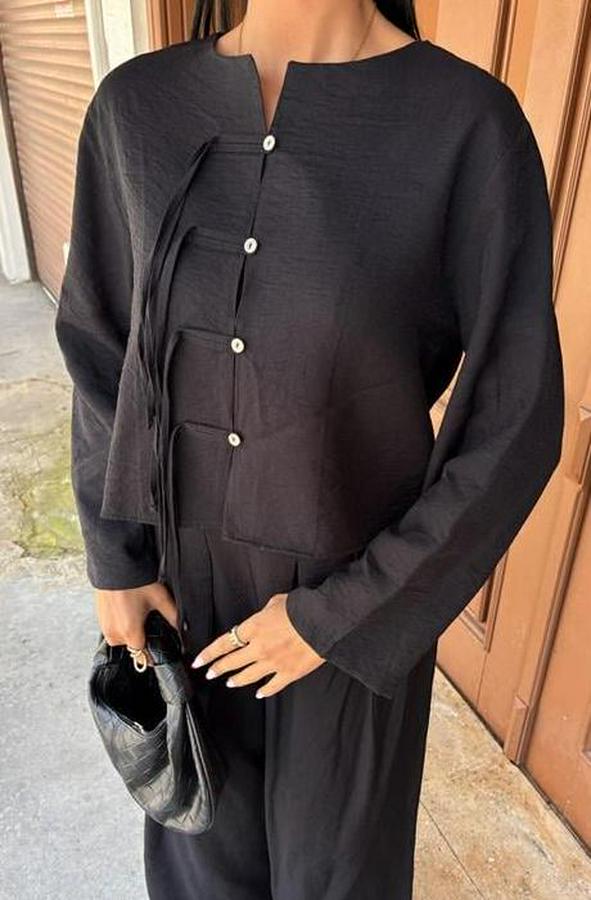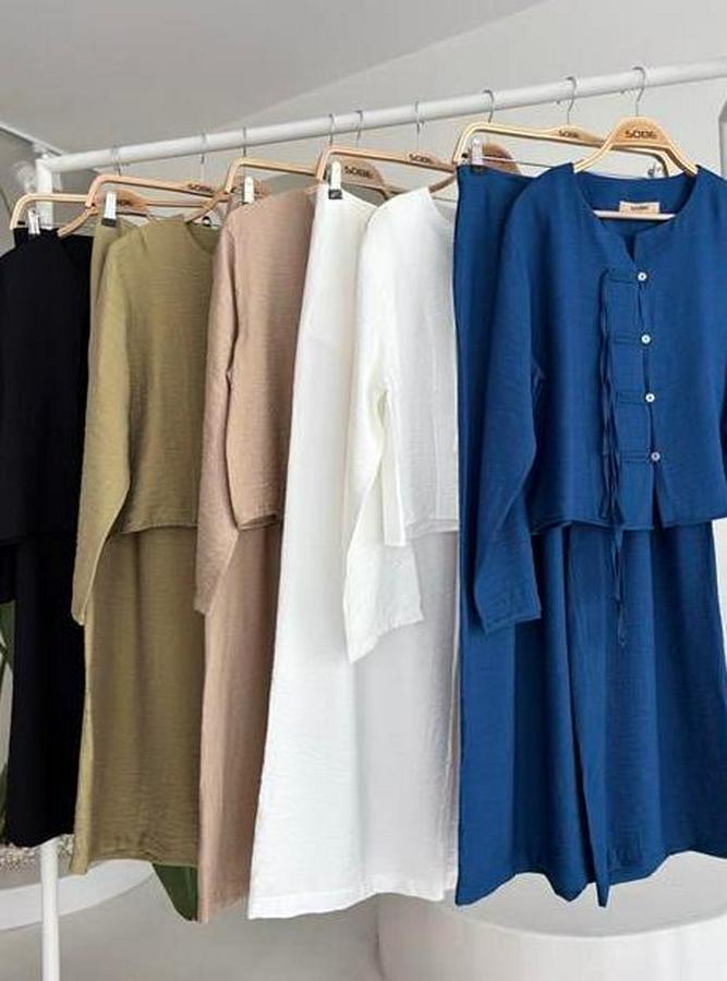 AnasayfaTüm ÜrünlerAlt GiyimPantolonÖnü Ince Kordon Detaylı Ve Double Paça Pantolonlu Takım 10180