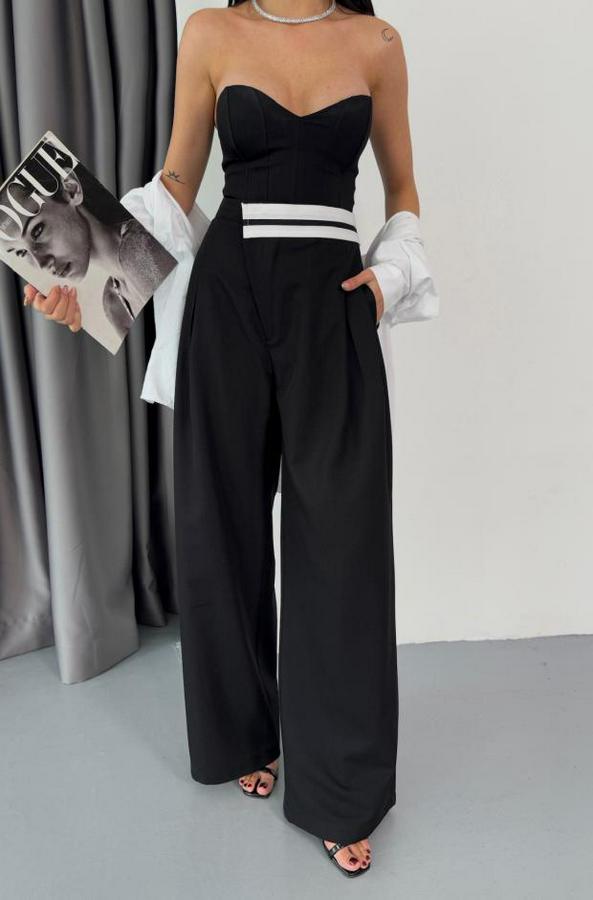 PANTOLON BEL ŞERİT DETAYLI - Siyah