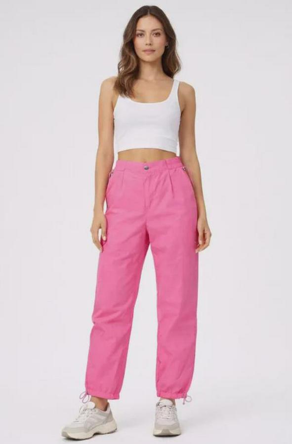 Paraşüt Kumaş Pantolon Bel Ve Paça Ayarlanabilir Lastikli Spor Pantolon - Pembe