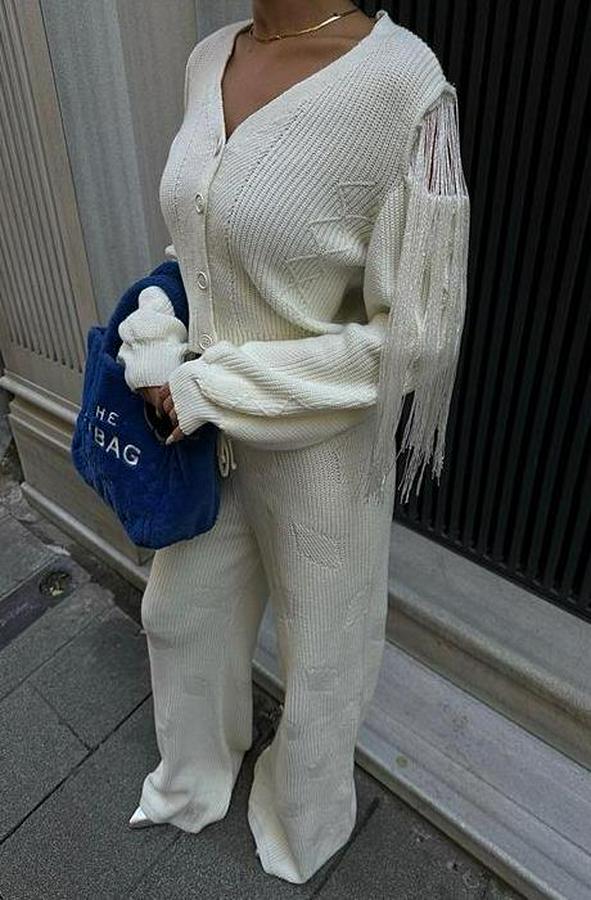 Püskül Detaylı Hırka Pantolon Triko Takım 9967