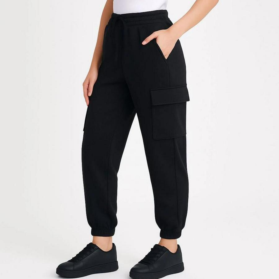 Siyah Jogger Eşofman Altı Rahat Kalıp, Kargo Cepli, Lastikli Paça, Günlük Spor Pantolon - Siyah