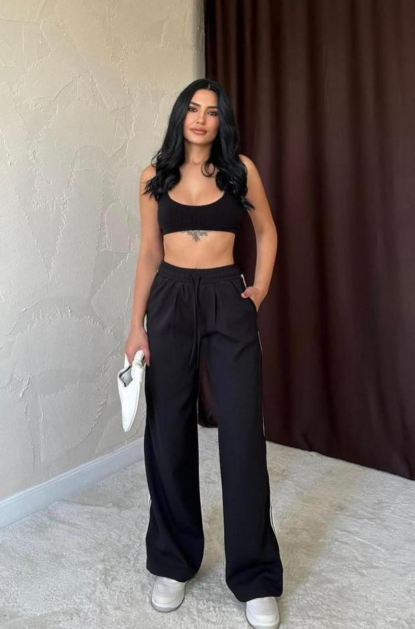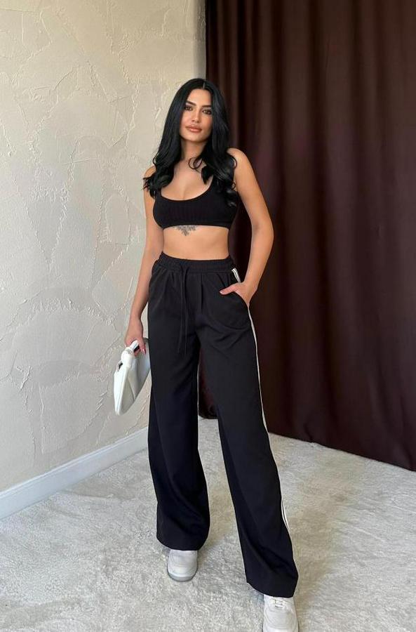 Siyah Yanları Şeritli Pantolon