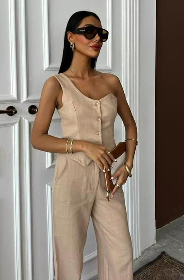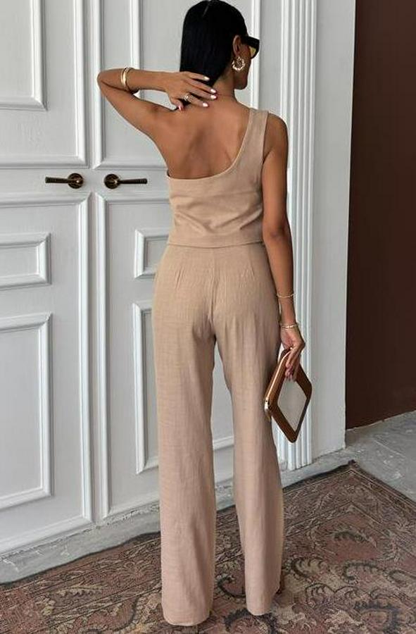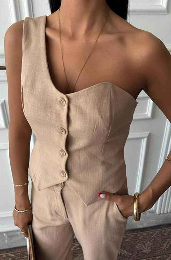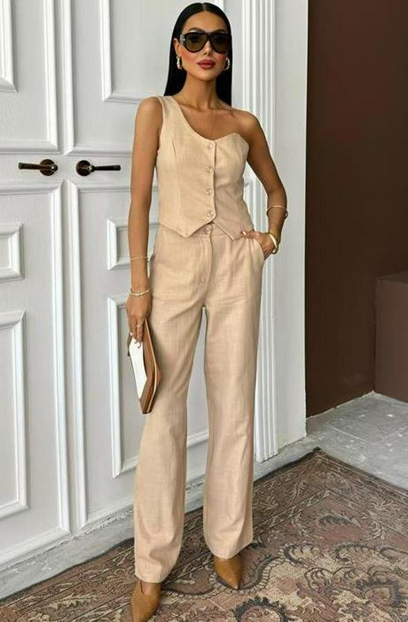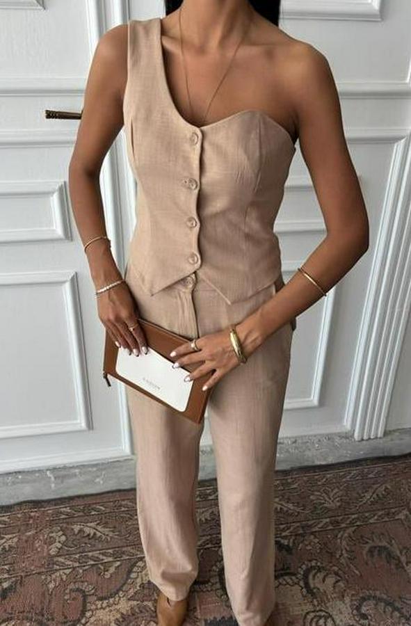 AnasayfaTüm ÜrünlerAlt GiyimPantolonTek Omuz Büstiyer Plazzo Pantolon Viscon Takım 10159