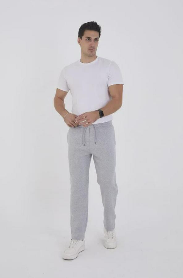 Erkek Üç İplik Basic Eşofman Boru Paça İpli Pantolon - Gri