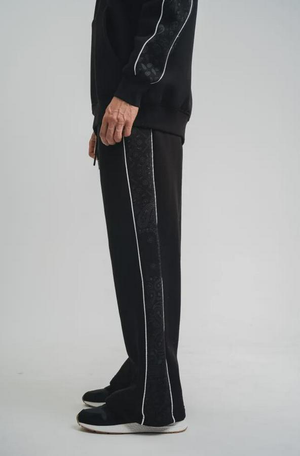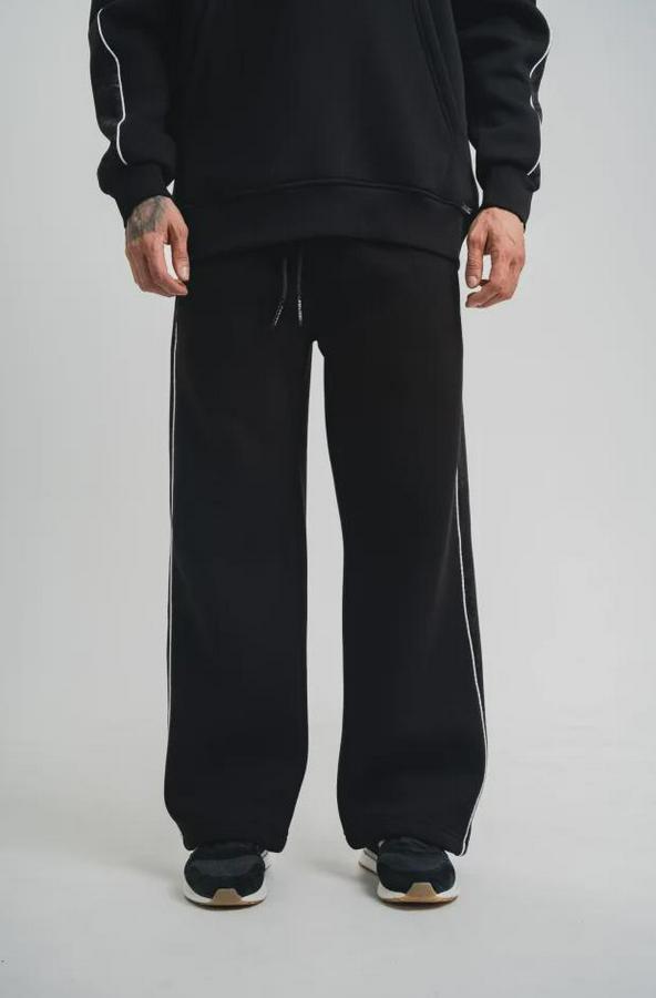 Üç İplik İçi Pamuklu Ara Biyeli Baskılı Baggy Eşofman Pantolon - Siyah