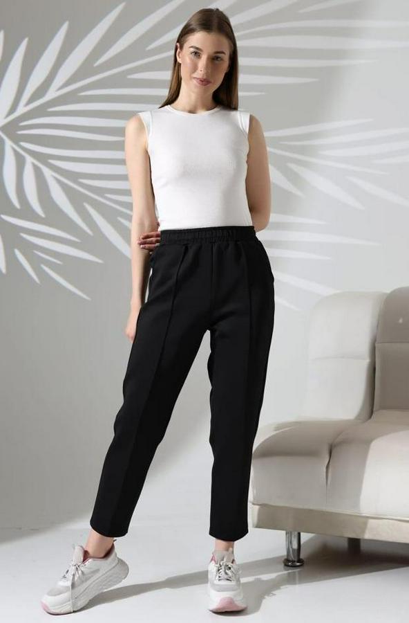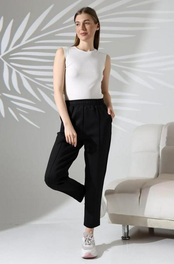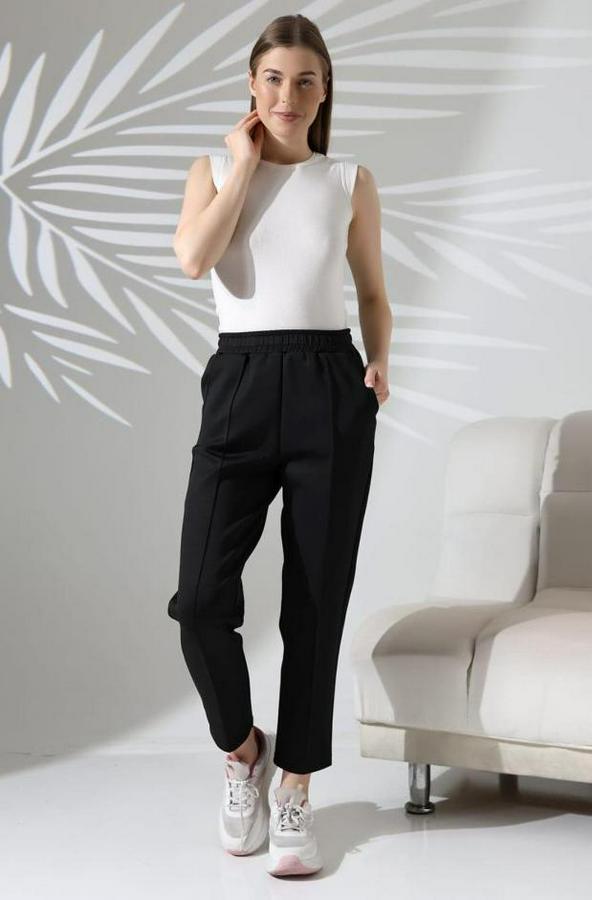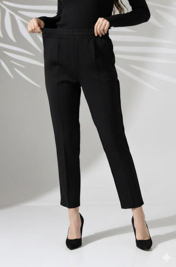 Kadın Uzun Kollu Dalıç Kumaş Cep Detay Beli Lastikli ütüsüz Pantolon