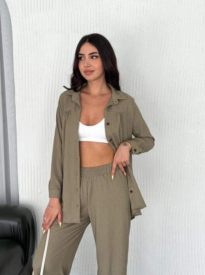 Yakalı Düğmeli Uzun Kollu Gömlek Pantolon Ikili Takım
