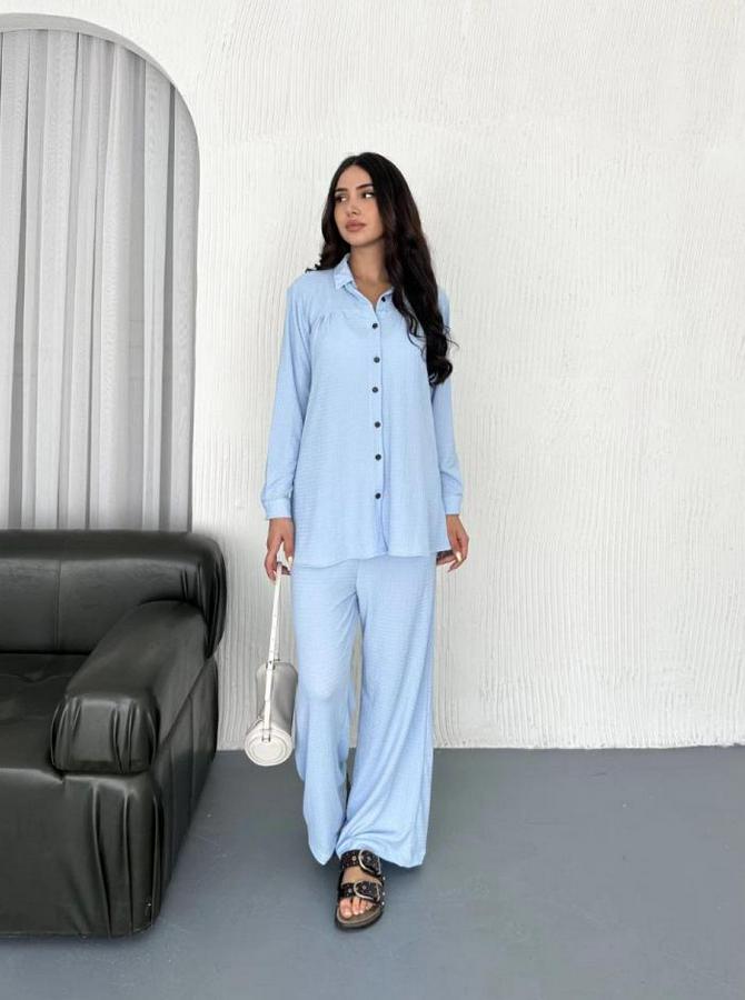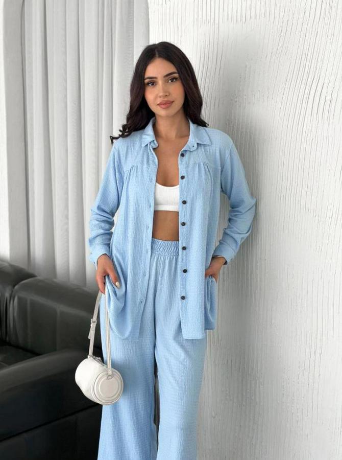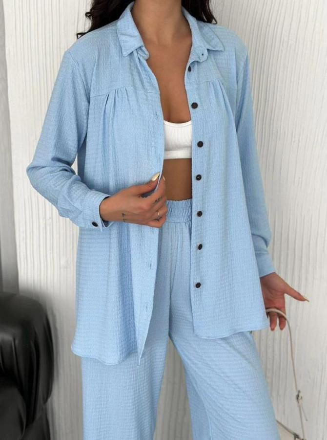 Yakalı Düğmeli Uzun Kollu Gömlek Pantolon Ikili Takım