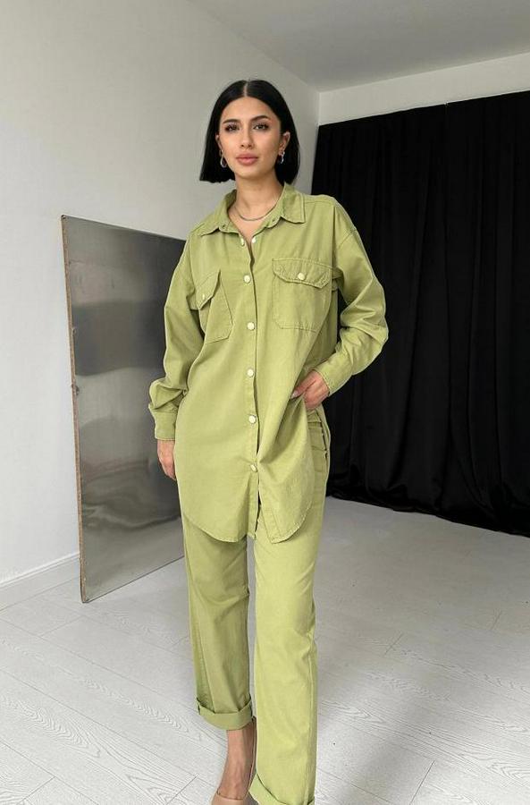 Yeşil Gömlek Ve Çıtçıtlı Pantolon Takım