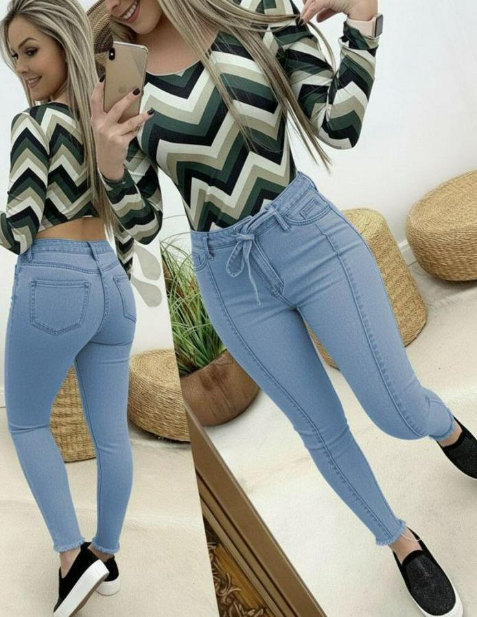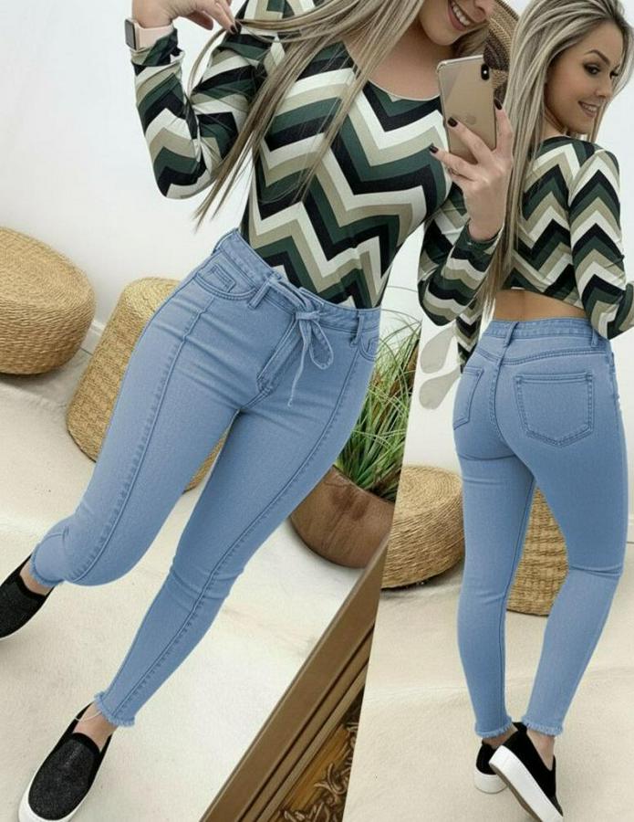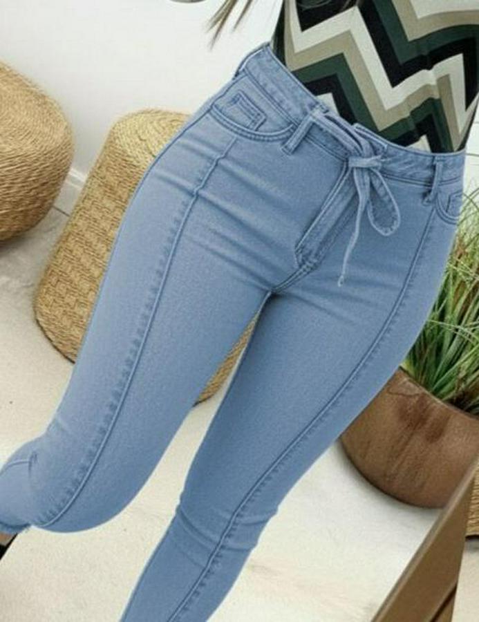 Kadın Yüksek Bel Belden Kuşaklı Yırtık Detaylı Kot Pantolon