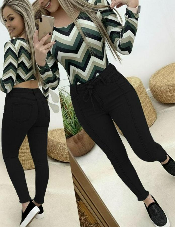 Yüksek Bel Belden Kuşaklı Yırtık Detaylı Kot Pantolon