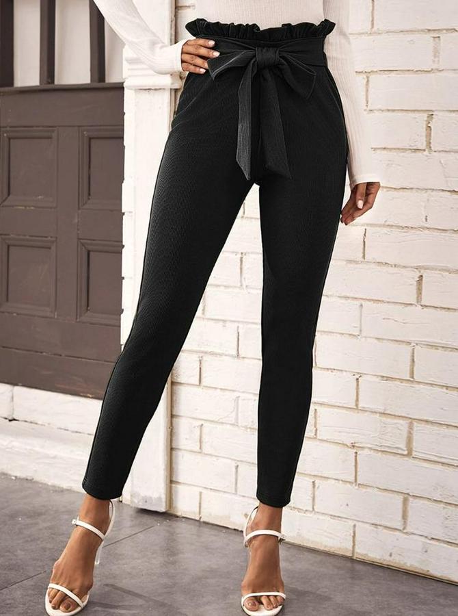 Kadın Yüksek Bel Beli Fırfırlı önden Bağlamalı Ithal Krep Pantolon