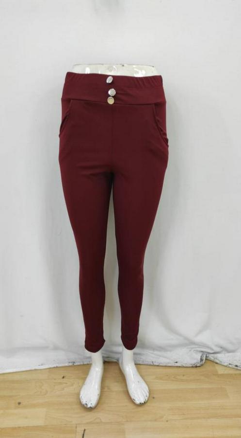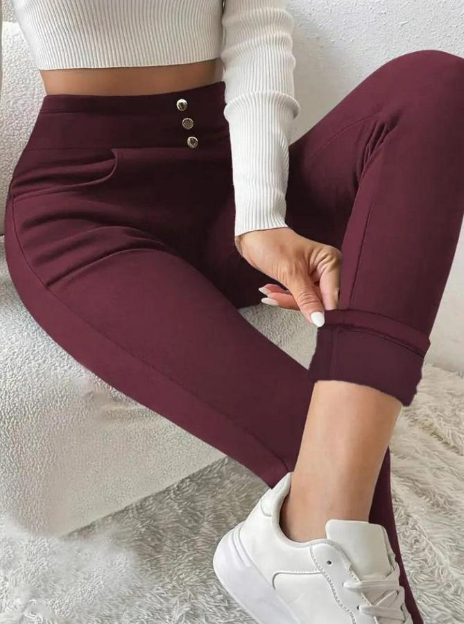 Kadın Yüksek Bel Cepli Düğmeli şardonlu Dalgıç Tayt Pantolon
