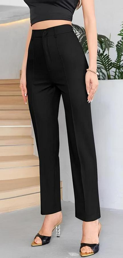 Yüksek Bel Cepli Önden Çimalı Dokuma Çanta Pantolon