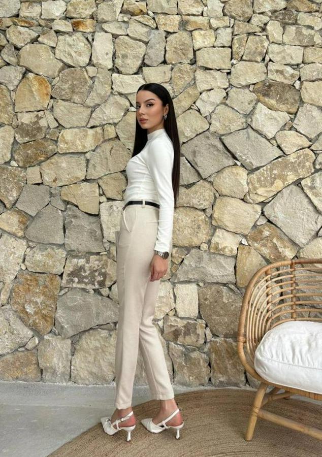 Yüksek Bel Dar Paça Kemer Dahil Kumaş Pantolon