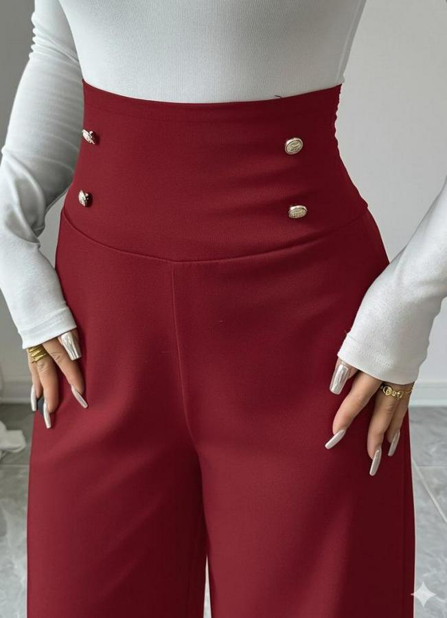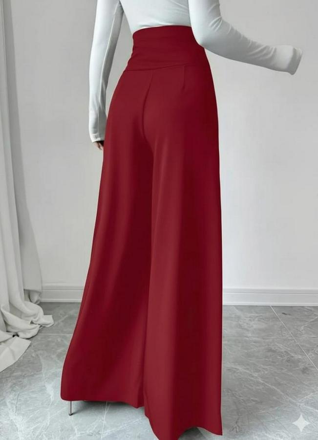 Yüksek Bel Düğmeli Geniş Paçalı Ithal Krep Pantolon
