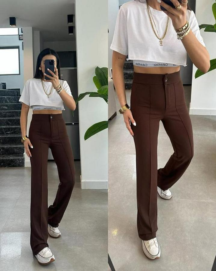 Yüksek Bel Full Likralı Krep Kumaş Pantolon