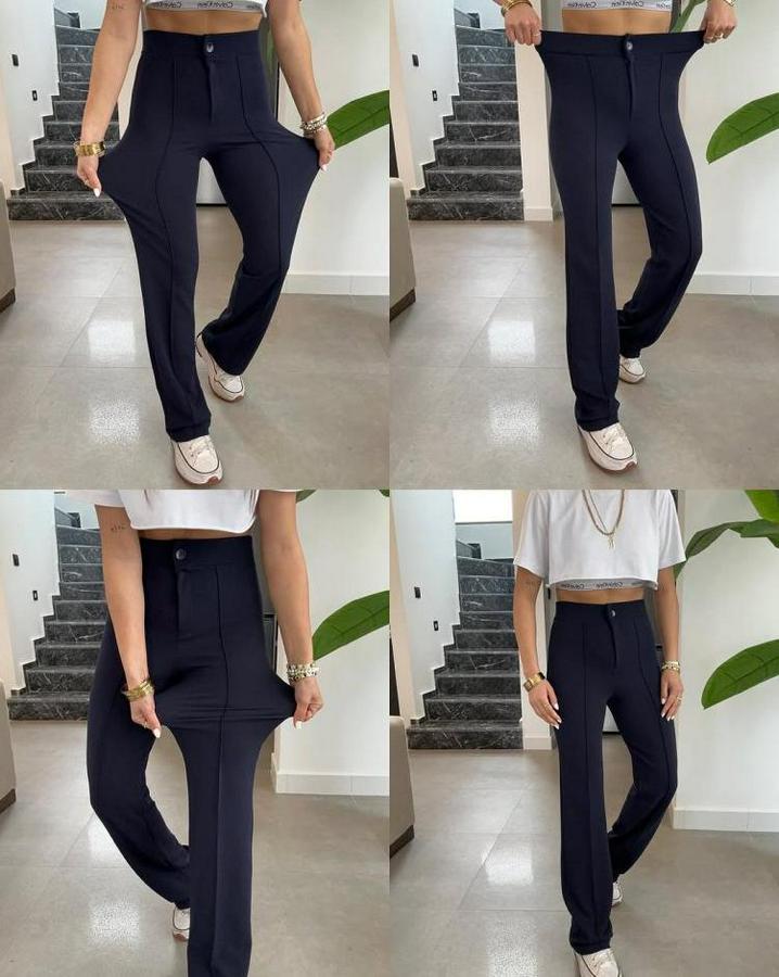 Kadın Yüksek Bel Full Likralı Krep Kumaş Pantolon