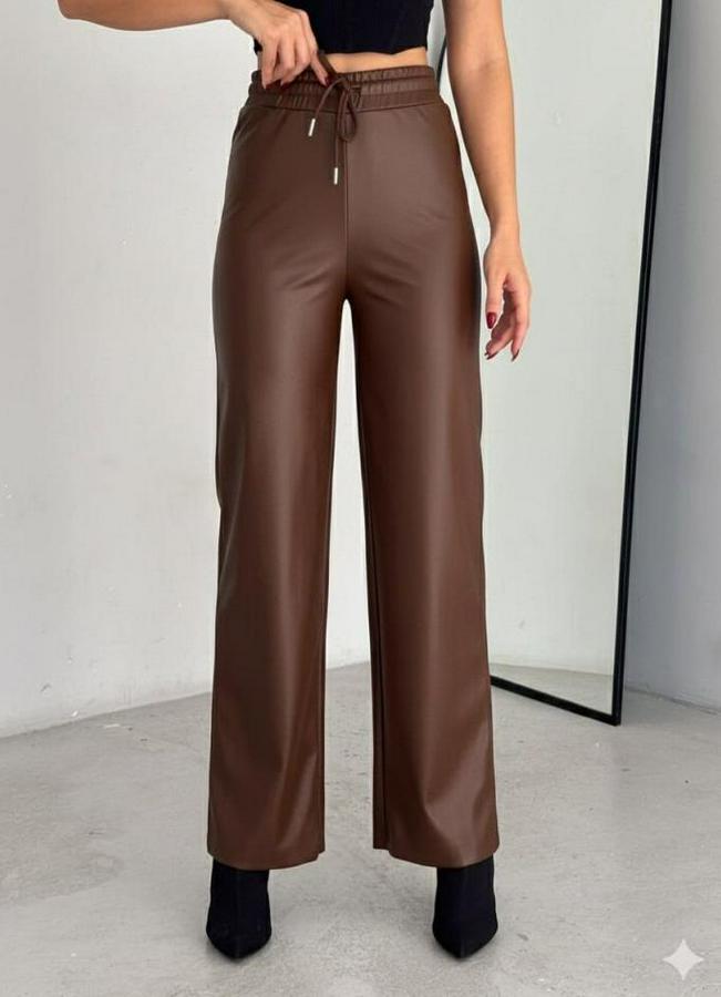 Yüksek Bel Geniş Paça Içi Şardonlu Deri Pantolon.
