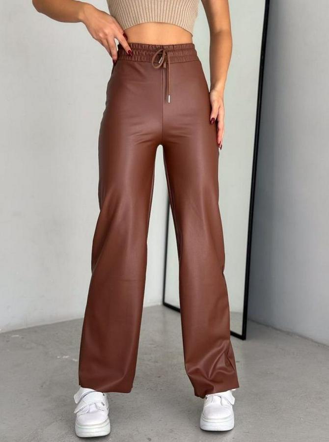 Yüksek Bel Geniş Paça Içi Şardonlu Deri Pantolon.