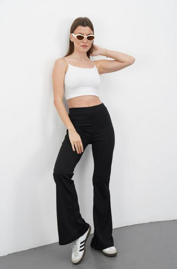 Yüksek Bel Krep Kumaş Bol Paça Pantolon