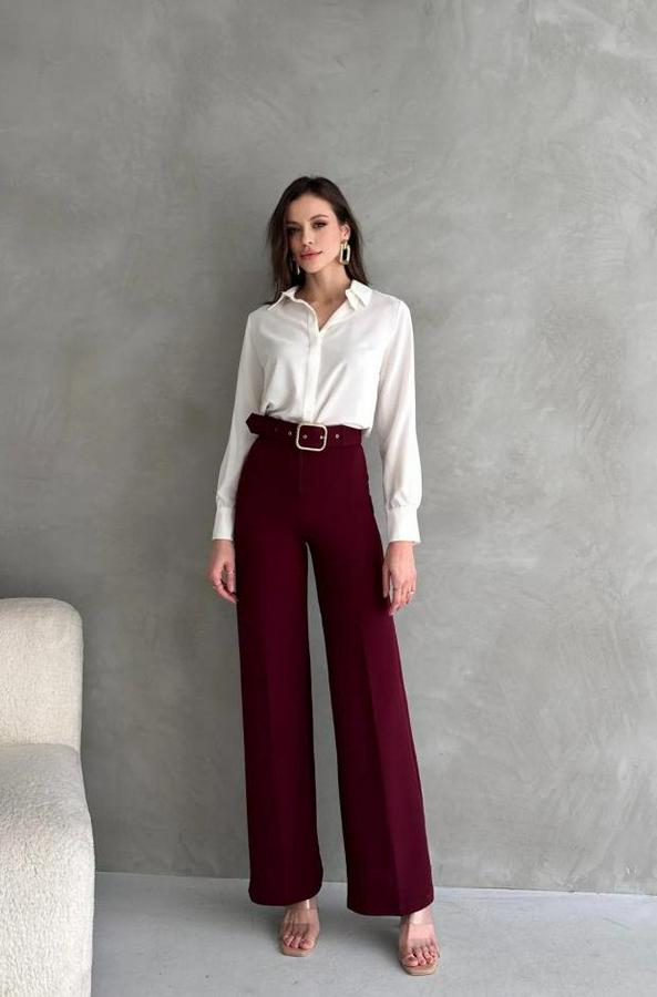 AnasayfaTüm ÜrünlerAlt GiyimPantolonYüksek Bel Krep Kumaş Full Likralı Ispanyol Paça Kemer Dahil Pantolon