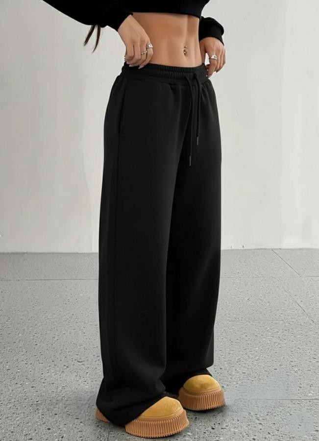 Kadın Yüksek Bel Lastikli Bağcıklı Geniş Kesim Dalgıç Pantolon