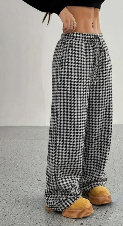 AnasayfaTüm ÜrünlerAlt GiyimPantolonYüksek Bel Lastikli Bağcıklı Geniş Kesim Kazayağı Dalgıç Pantolon