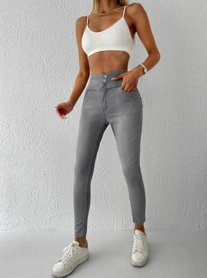 Yüksek Bel Likralı Jean Pantolon 90 Cm