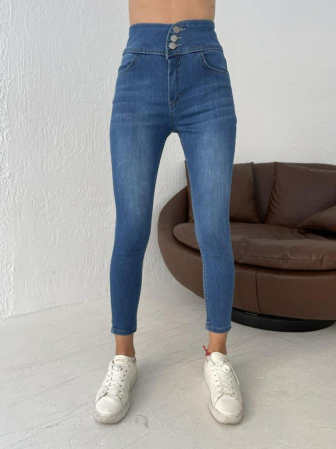 Yüksek Bel Likralı Jean Pantolon 90 Cm