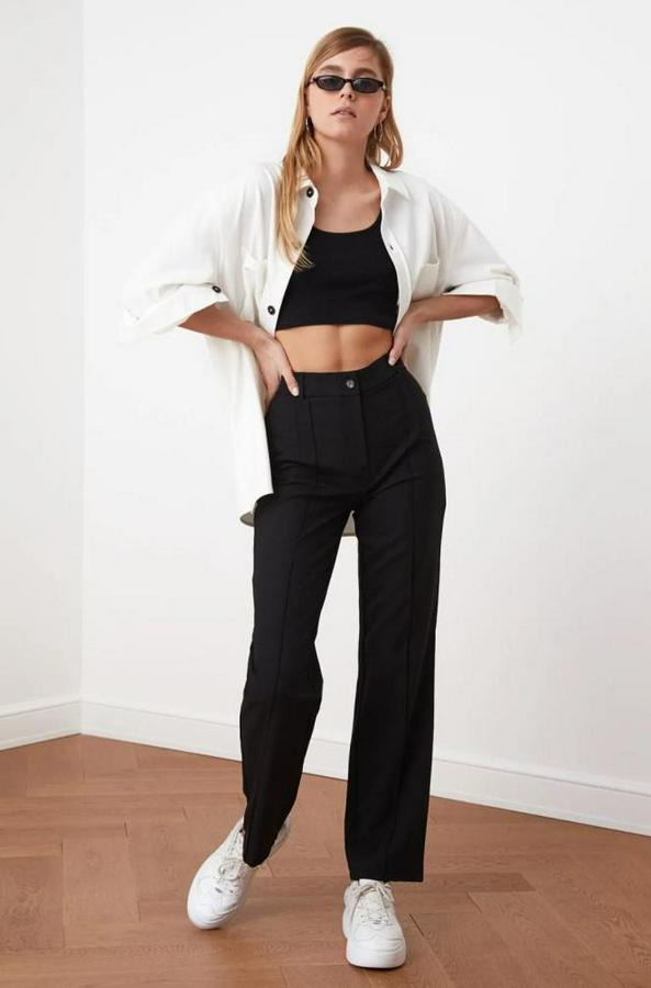 AnasayfaTüm ÜrünlerAlt GiyimPantolonYüksek Bel Nervurlu Ithal Krep Pantolon