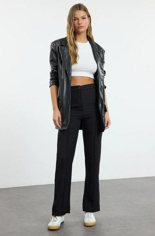 Yüksek Bel Nervurlu Ithal Krep Pantolon