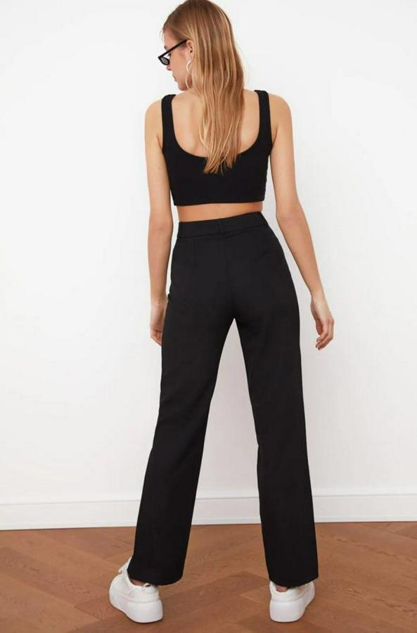 AnasayfaTüm ÜrünlerAlt GiyimPantolonYüksek Bel Nervurlu Ithal Krep Pantolon